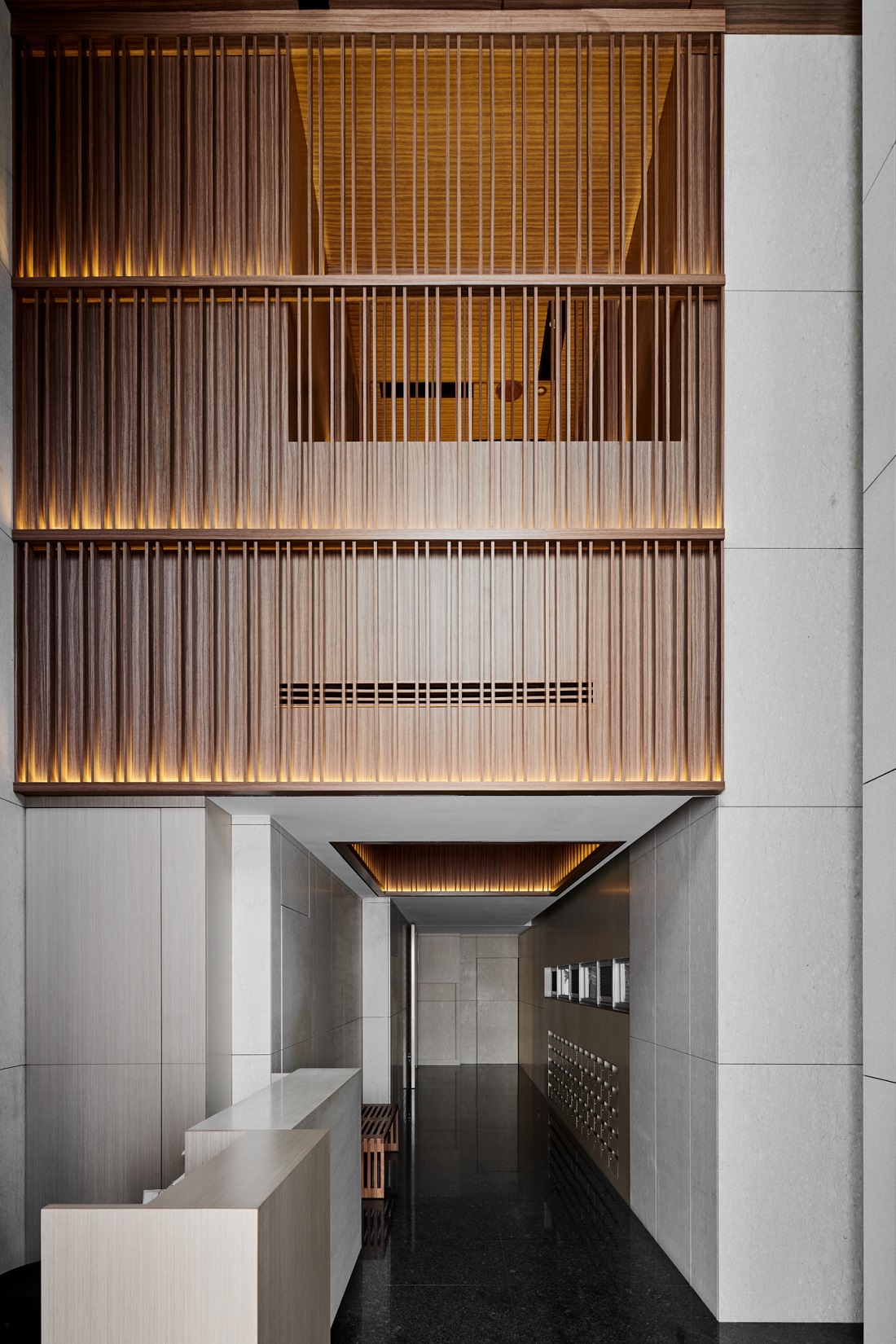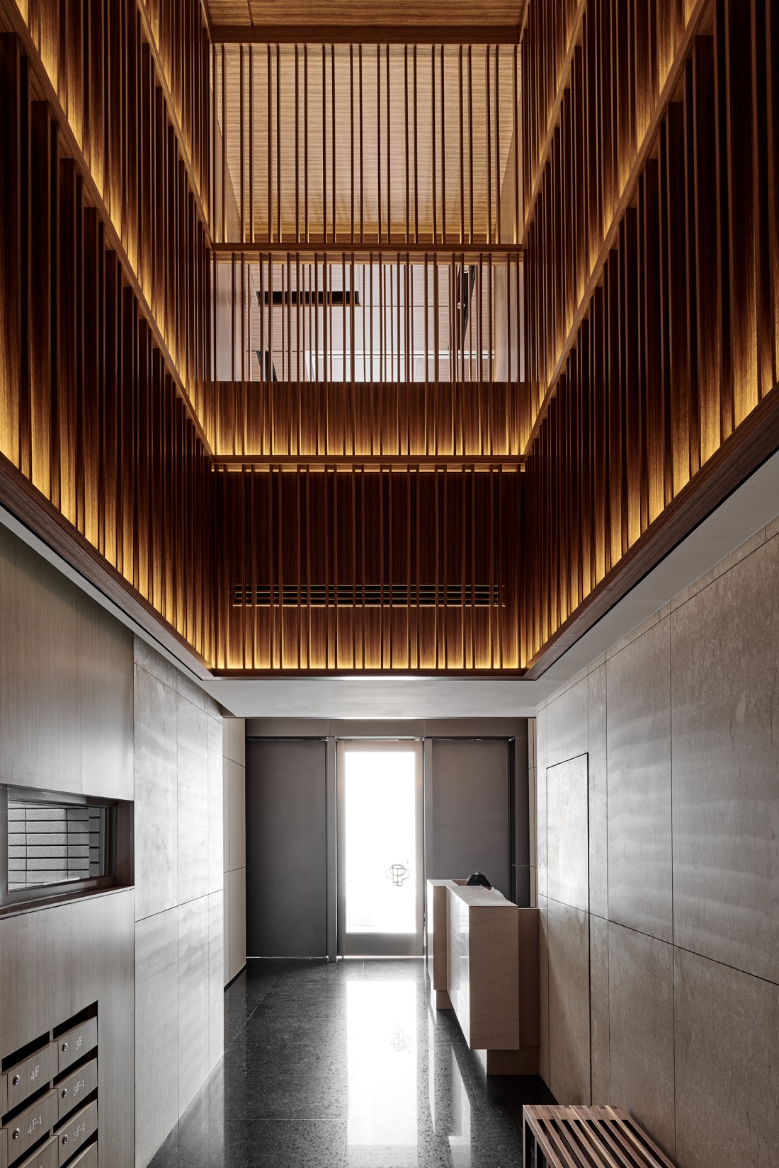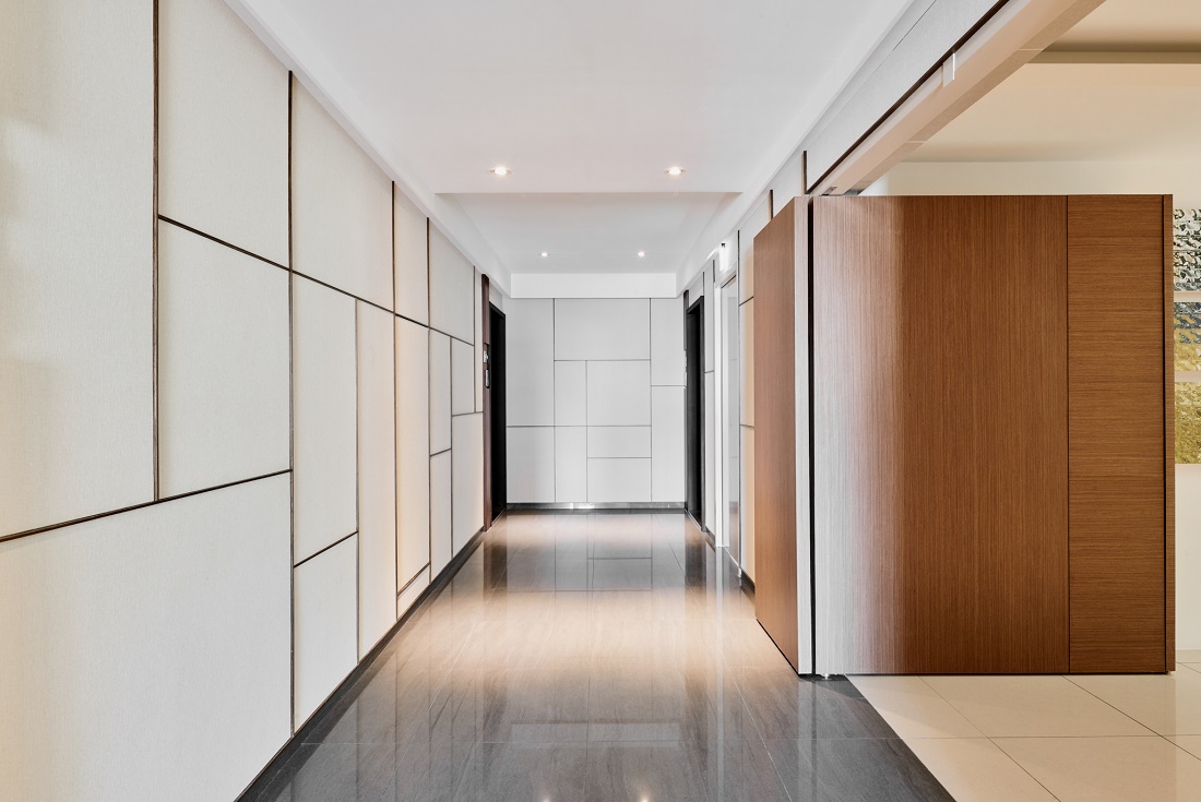 雅璞心向 Prospect Place為雅璞建設在新北市的第一件開發案,基地位於新北市環狀捷運線、64號快速道路及景平路旁,三面臨路,南側接連鄰房,西側與景平捷運站相隔4米通路,北面鄰40米景平路,北側景平路規劃三間店面,社區住宅入口由西側出入,東側為機械停車出入及社區後門使用,因住宅門廳寬度受限於四公尺,利用9公尺挑高設計解決大廳空間的壓迫感,並在挑空上方以木質建材強調住宅的本色及氣派,各層住宅電梯廳牆面設計不同抽象掛圖,提供不同層樓的辨識與藝術氣氛,每層住宅廊道皆規劃開窗,在廊道上的採光及通風是雅璞心向要求健康和安全的特色,設置在屋頂的小型會議室及空中花園提供住戶休憩與接觸自然的場所,本案以綠建築規範設計並取得銀級獎章,如同以往,Top-down的細部規劃仍是我們團隊注重的項目,包括整個社區室內裝修、社區標誌、大門門把、信箱間、玄關門等皆獨特且唯一。